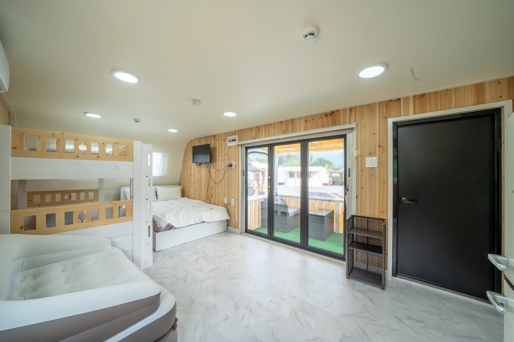 您好,我們是Onda ,正在研究和提供各種休息區域。 希望入住這裡的每個人都能度過舒適愉快的時光。 【關於住宿】 大篷車之間有廣闊的間隙,因此您可以享受私人時間。 此外,所有客房均配備加熱泳池,因此從家庭到愛好者、朋友的每個人都可以享受住宿體驗。 用大篷車露營留下珍貴的回憶,您可以為厭倦日常生活的人享受真正的放鬆。 [房間類型] 單間公寓類型( 1張大牀+ 2張雙人牀+ 1間廚房+ 1間浴室) *牀上用品根據預訂人數提供。
