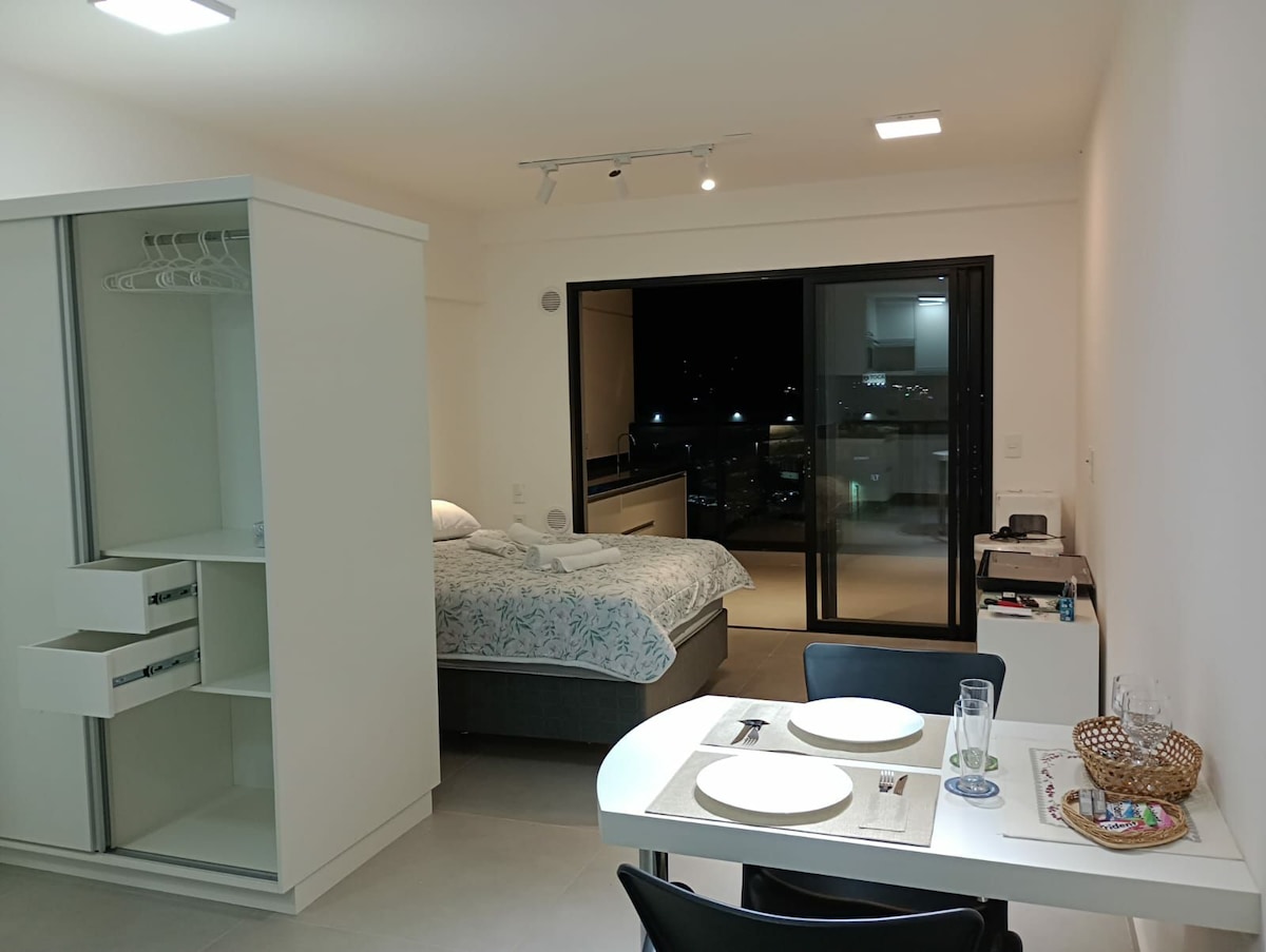 歡迎來到公寓。 813 ! 在這裡,您可以找到一間設備齊全、空調和自動化的公寓,在靠近Marília/SP的前巴士站附近,享受舒適、安靜和難忘的住宿。 我們的小角落非常適合2人入住,但我們的衣櫃裡有一張雙人牀,讓我們可以再容納2位同伴,因此對於3或4人的短期住宿,我們也是一個很好的選擇! 我們非常期待接待你,讓我們成為我們故事的一部分!