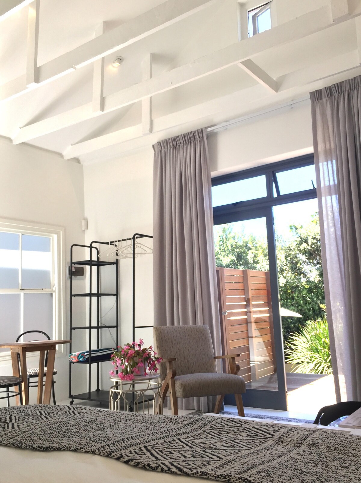 客用套房,配有加大雙人床或兩張單人床、套房淋浴間和小型功能廚房,位於安靜、綠葉成蔭的Newlands。庭院配有桌椅。步行即可抵達Newlands Village商店和餐廳、Cavendish購物中心和Newlands板球和欖球場。步行或開車3公里即可抵達UCT和Kirstenbosch。同一房源內的其他兩間類似套房。