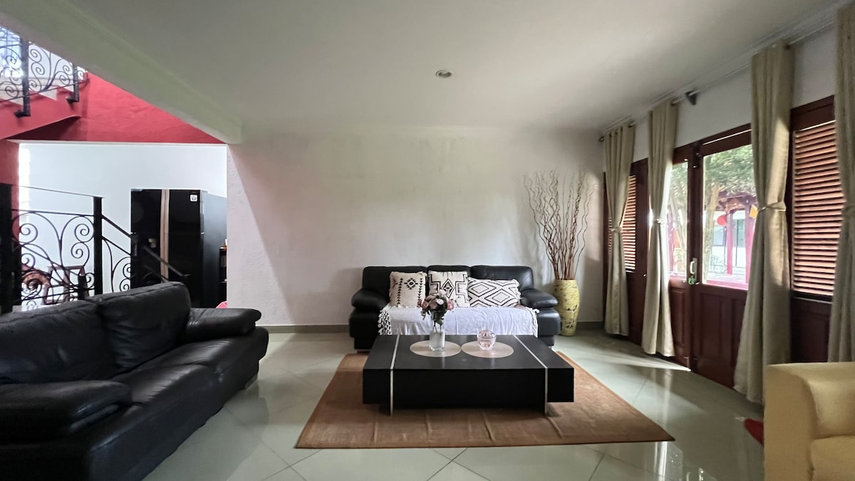在假期期間入住我們寬敞現代的房源。景觀非常好,周圍環境豪華,位於安靜的住宅區。這是整套房源和私人空間,但禁止舉辦派對和播放吵雜的音樂 二樓:全部 3 間臥室(帶陽臺); 1樓:客廳(配有沙發床)、儲藏室 俱樂部設施(距離70公尺-免費):游泳池、健身中心、私人電影院等。 非常靠近Telkom大學和Oetomo醫院 早餐和餐點:Wellgrow咖啡廳、Indomaret、麥當勞和星巴克24小時開放