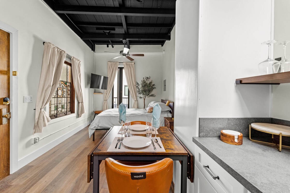 歷史悠久( 800平方英尺)的建築,天花板為15英尺。位於聖地牙哥市中心的煤氣燈區內。 與您的同事或朋友一起入住的完美房源。距離寵物公園、小意大利和會議中心僅幾分鐘路程。 步行即可抵達各式各樣的餐廳、酒吧、夜生活和咖啡館。中心位置,靠近機場、SD動物園和科羅納多海灘。