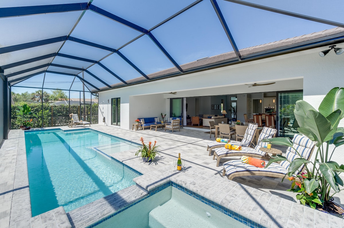 歡迎來到您在陽光明媚的佛羅裏達州度假屋! 這間豪華度假屋提供寬敞的4BR/3BA Cape Coral海濱別墅,可供8人入住,配有私人泳池、按摩浴池、廚師廚房、免費泊車、寵物友好政策和可靠的Wi-Fi ,非常適合家庭、情侶、商務旅客和遠程工作人士。 Casa del Lago是一個奢華的海濱度假勝地,專為那些尋求放鬆和放縱的人而設計。