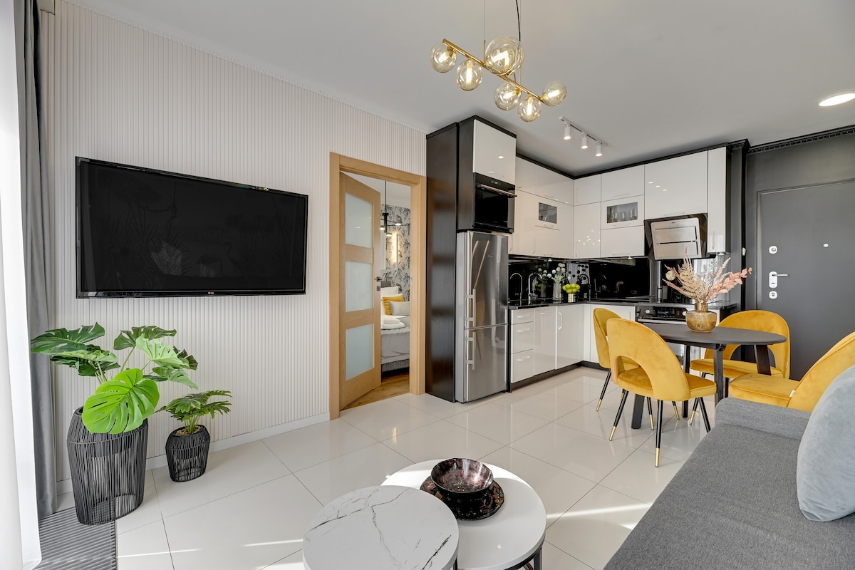 現代化36平方米的單間公寓,靠近格但斯克市中心。 非常適合2人入住。 公寓設備齊全的廚房、帶淋浴間的浴室和舒適的沙發。 公寓內提供毛巾和牀單。 此房源提供豪華泳池、桑拿房和健身房。 公寓附近的熱門景點包括綠門( Green Gate )、長橋( Long Bridge )和海王星( Neptune Fountain )。 最近的機場是Gdańsk Lech Wałęsa機場,距離公寓8.7英裏。