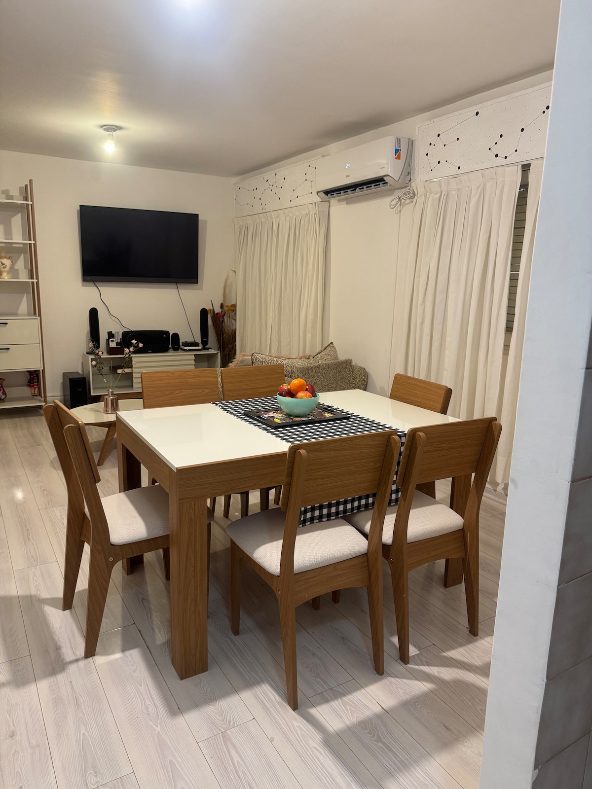 我的房子非常舒適涼爽,有很多通風和自然光線。 我有一個非常寬敞的雙人房和2張扶手椅/牀,一個寬敞的餐廳,有2張單人牀和一張有3個位置的日式牀墊。 非常靠近房源的是市內的主要購物中心,距離巴士總站10個街區,距離機場3公裏,距離雪中心15個街區。 我來了,知道我溫暖的家,很期待見到你!