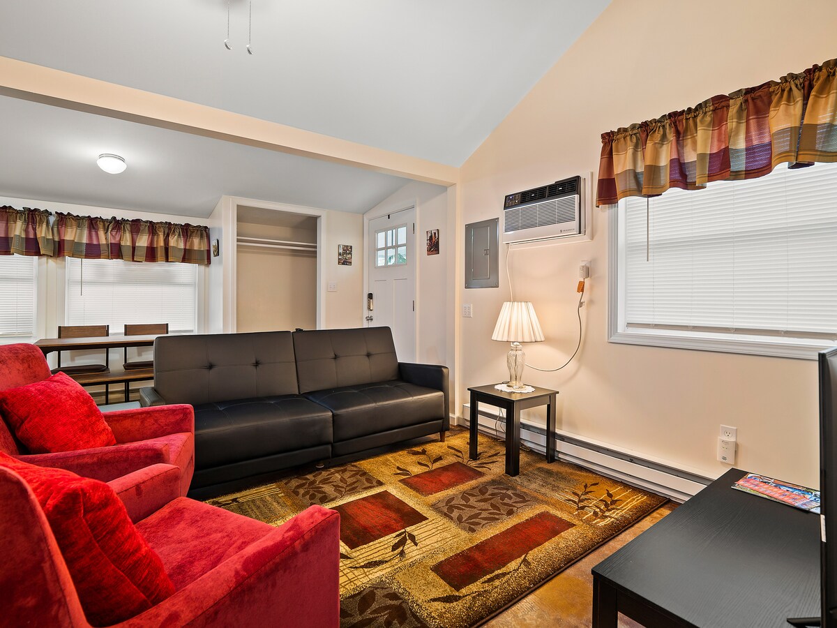 🛏 2 queen beds • Sleeps 4 comfortably 🍽 Full kitchen + cozy living space 🌿 Front porch with lounge seating 📺 Smart TV • Wi-Fi • A/C + heat 🐾 Pet-friendly for your furry friends 📍 Walk to Geneva-on-the-Lake Strip + winery shuttle across the street The Chardonnay Cottage is your peaceful base to enjoy wine country, beach days, and lakeside memories—just far enough from the action for restful nights.