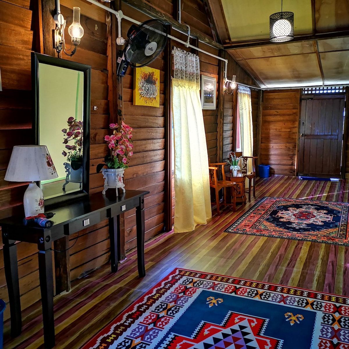 這是一棟擁有50多年歷史的真正甘榜房屋,面有一個魚塘,步行不到一分鐘即可抵達河畔。 令人愉快地坐落在更高的地面上,讓您更廣闊地俯瞰綠色和Titiwangsa山脈。 請注意:如果想要奢華的寄宿家庭入住,不適合您入住。