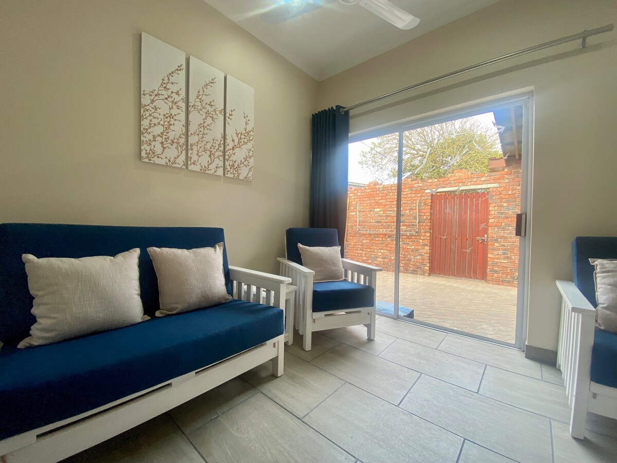 在這個平靜、時尚的空間中,好好享受放鬆身心。 專為在休息室區域舒適地安靜住宿而設計,您可以在小廚房享用一杯咖啡或茶,同時在Netflix或DSTV上觀看您最喜歡的電視節目,或在43英寸電視上瀏覽YouTube。 私人後院配有椅子和燒烤設施。 在現代化的浴室中沖涼後,享受一個安靜的夜晚。