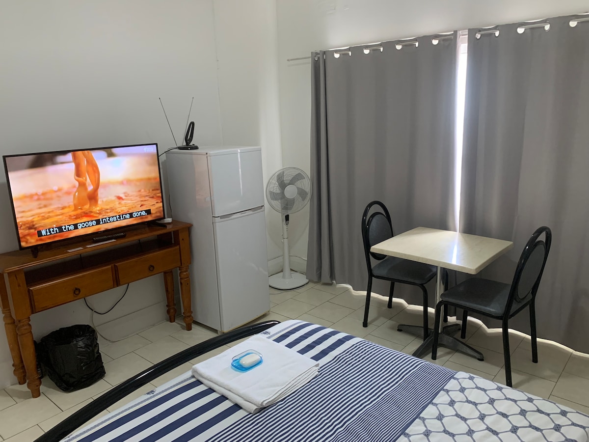 它位於Sec.Bldg ,位於高樓層,可欣賞遠處海景和機場,不受噪音幹擾。 享受充足的陽光和舒適的微風,乾淨和溫馨,配有舒適的沙發、55英寸電視。 廚房設備齊全。 靠近機場、海灘、醫院、車站、餐廳。 讓它成為旅遊、度假和商務差旅的理想選擇。 開車幾分鐘即可抵達海灘/步行4分鐘即可抵達火車站/步行7分鐘即可抵達市中心/開車5分鐘即可抵達聖喬治醫院