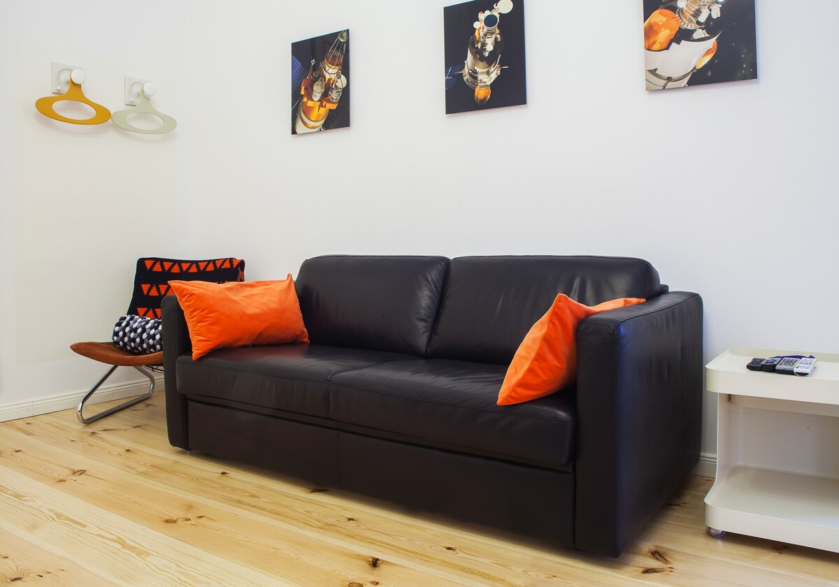Cosy, airy basement apartment in Kreuzberg with hardwood floor throughout, stylish furniture and excellent heating. It contains a separate bathroom with powerful shower and own kitchen with coffee machine, cooking facilities, kettle and dining area. The spacious bedroom features a comfortable double bed, a large wardrobe, leather sofa and writing desk.