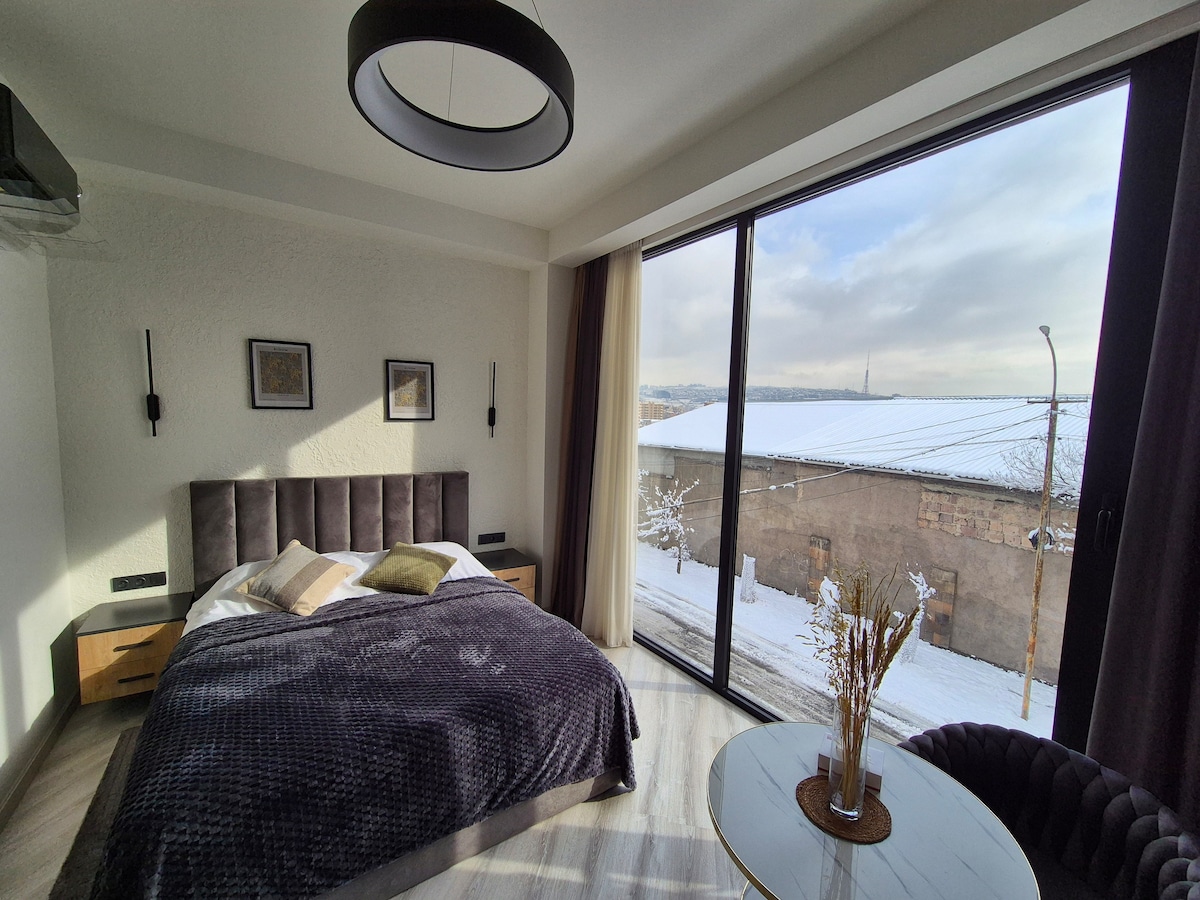 在柔和的光線和阿拉拉特山的迷人景色中醒來。 這間明亮舒適的公寓距離共和國廣場僅幾分鐘步行路程,一切都近在咫尺,但安靜地隱藏著。 這裡有大窗戶、溫馨簡約的設計和貼心的細節,是放鬆、創作或探索這座城市的完美場所。 無論您是出差還是想來這裡,這個空間都以平靜和魅力歡迎您。
