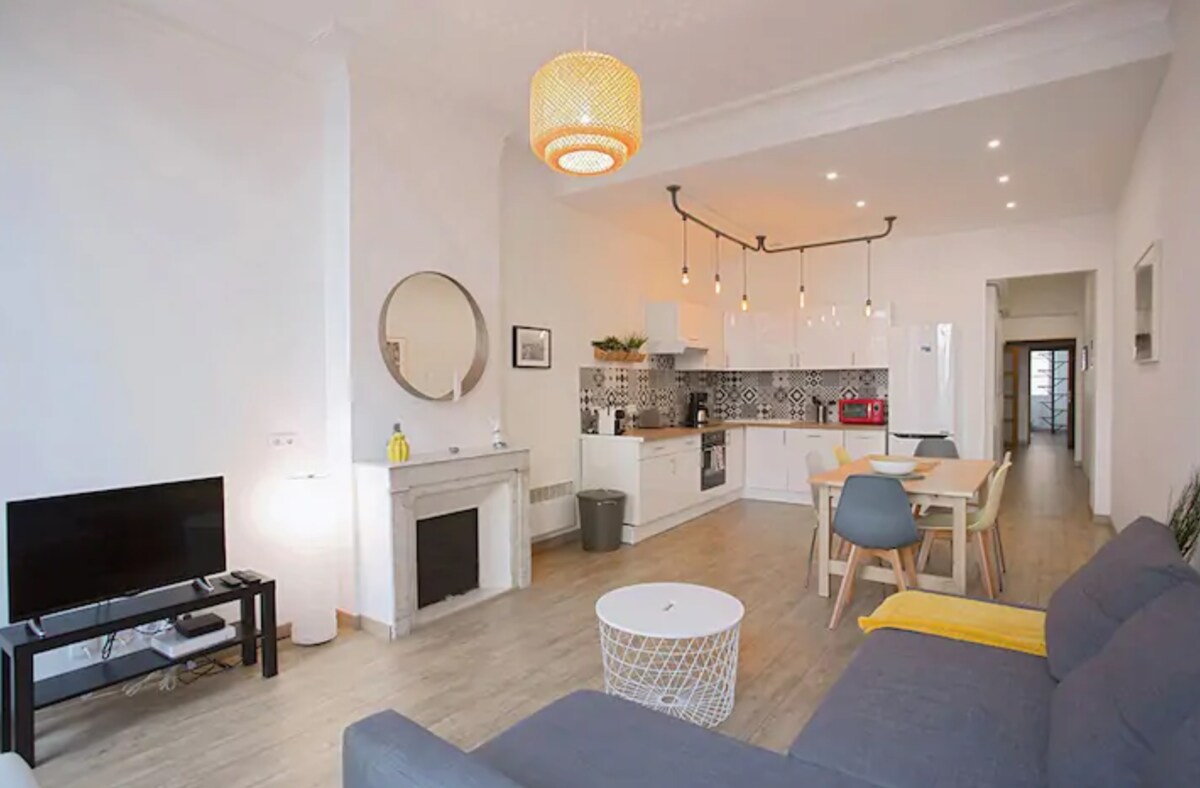 位於歷史中心舊建築內的精美翻新公寓。靠近普羅旺斯市場、市場大廳和所有商店。距離火車站 10 分鐘,距離港口和梅奧爾球場 5 分鐘,步行即可抵達。可搭乘巴士(10 分鐘)或步行(20 分鐘)前往穆里永 (Mourillon) 海灘。