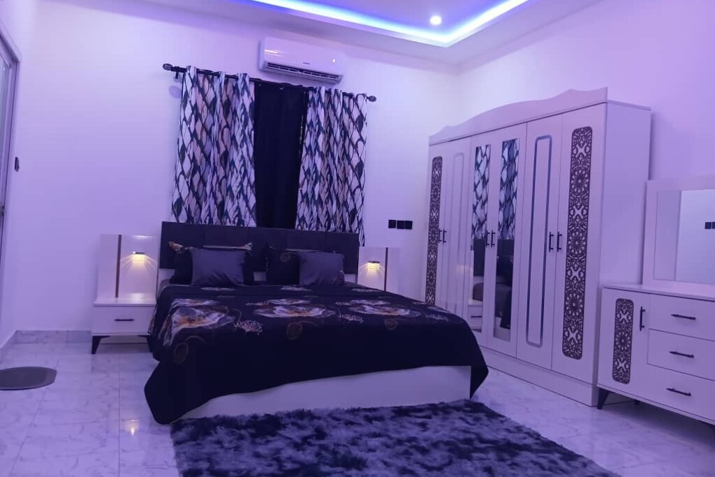 聖塔莫尼卡家庭小屋(Santa Monica Home Lodge)擁有寧靜舒適的環境,擁有華麗的非洲傳統裝飾,符合非洲和國際奢華標準。 我們的3套公寓每間可容納4位房客。 每間臥室最多可容納2人,並有自己的獨立浴室。 起居室和廚房是獨立空間。 我們的自炊式廚房設備齊全,配有廚師。 房客的安全和舒適是我們的首要任務。