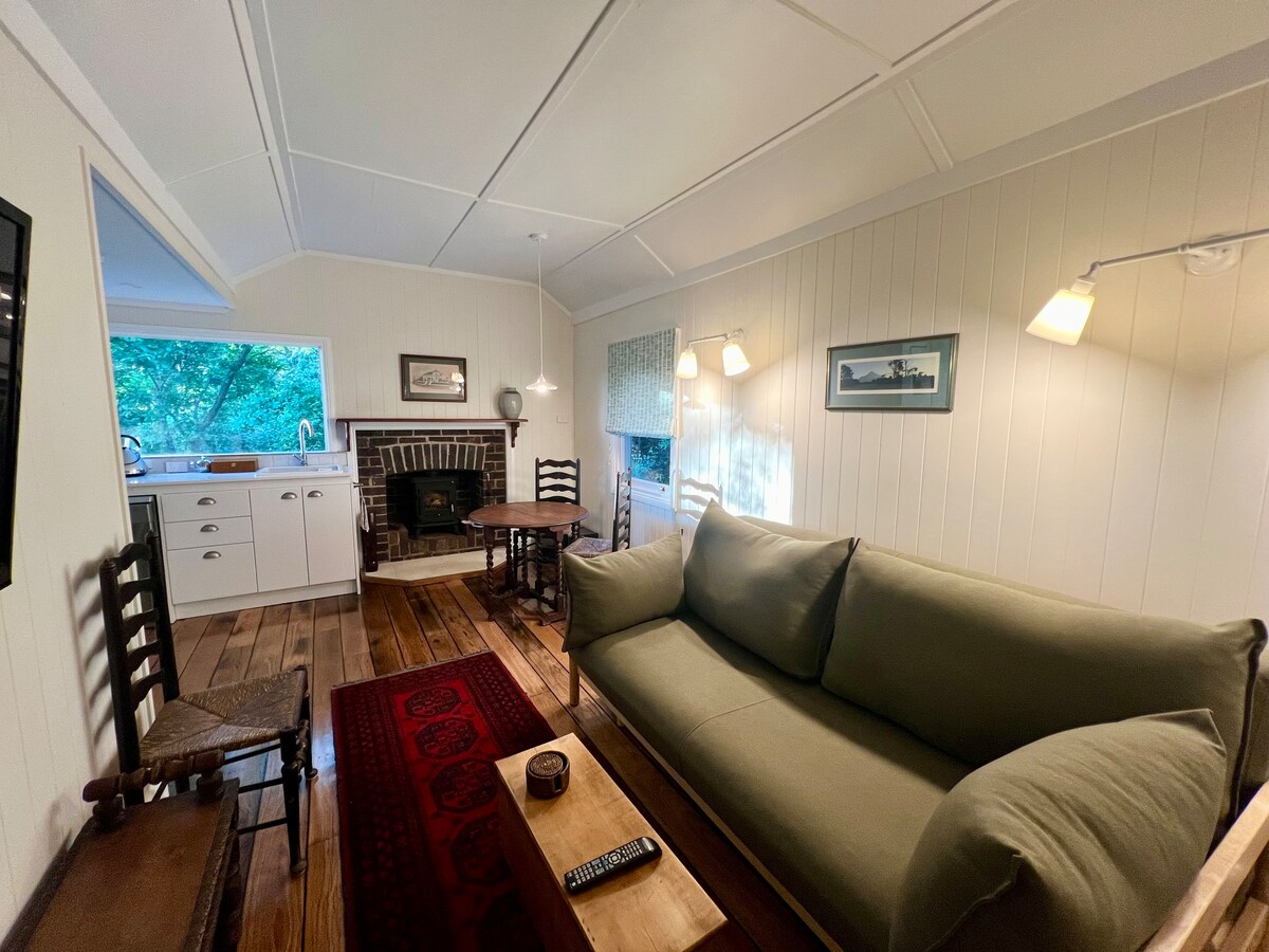 A secluded self-contained cottage, hidden away behind the main residence and just on the edge of town. Best suited to a couple or quiet retreat for one. Light-filled open-plan living area with kitchenette, bedroom with ensuite. Private off-street parking. Additional services can be provided on request.