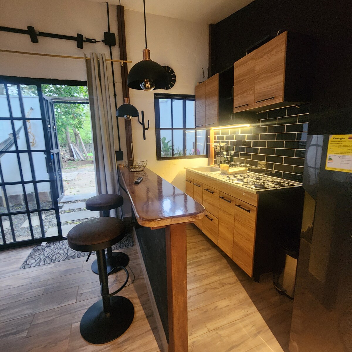 Vive una escapada única en nuestra cabaña-contenedor de diseño exclusivo. Sumérgete en un entorno natural y seguro, donde la naturaleza y la innovación de su constriccion se unen en un solo lugar. Imagina noches bajo las estrellas en tu jacuzzi privado o alrededor de la fogata. Disfruta de una zona de BBQ, un espacio para hamacas y vistas que te dejarán sin aliento. Captura momentos espectaculares y crea recuerdos para toda la vida. ¡Es hora de reservar tu paraíso!