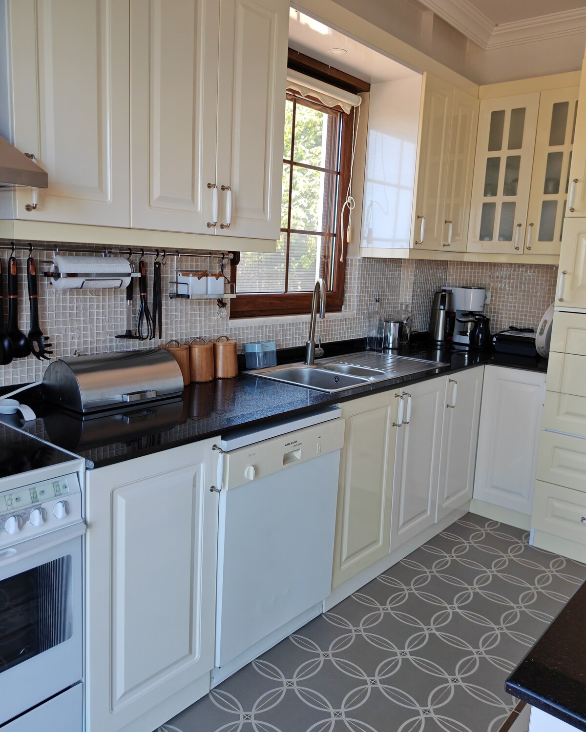 Bu şık konaklama yeri grup seyahatleri için mükemmeldir.Alt katta Salon,yemek odası, tam donanımlı mutfak,banyo- tuvalet mevcuttur.Geniş bir verandası ve burada yemek masası ve sandalyeler,şezlonglar ve güneş şemsiyeleri mevcuttur.Üst katta 3 yatak odası vardır.Bir odada 2adet tek kişilik yatak vardır.Bir ebeveyn banyolu ,anahtarlı kasası olan çift kişilik oda mevcuttur .Bu katta da ayrıca genel tuvalet ve banyo vardır