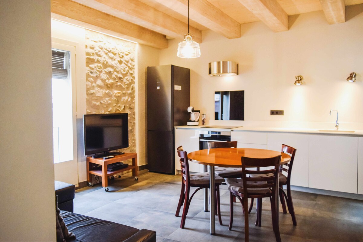 Discover historic charm with modern amenities at Can Bona Casa! Located in the main square of the old town of Besalú, our 15th century apartment offers a unique experience. Enjoy renewable energy and an "A" energy efficiency certificate. Forget about stairs with our elevator. With an equipped kitchen, laundry and a cozy living room with smart TV and sofa bed, your stay will be perfect! Book now and experience the fusion of old and new at Can Bona Casa.