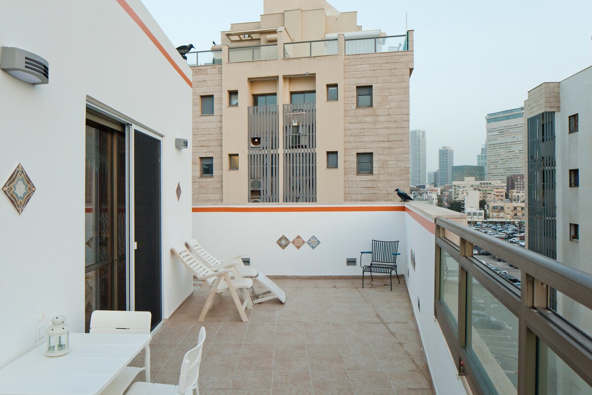 歡迎來到特拉維夫市中心著名的複式公寓。 我們承諾,在最高層樓度過完美的假期。 公寓很大,非常寬敞, 90米, 2層樓。 從客廳的窗戶到特拉維夫摩天大樓的令人驚嘆的景色。 公寓非常乾淨和整潔,符合最高標準。 中心位置:從海灘步行7分鐘。 靠近超市、酒吧、餐廳、咖啡館。