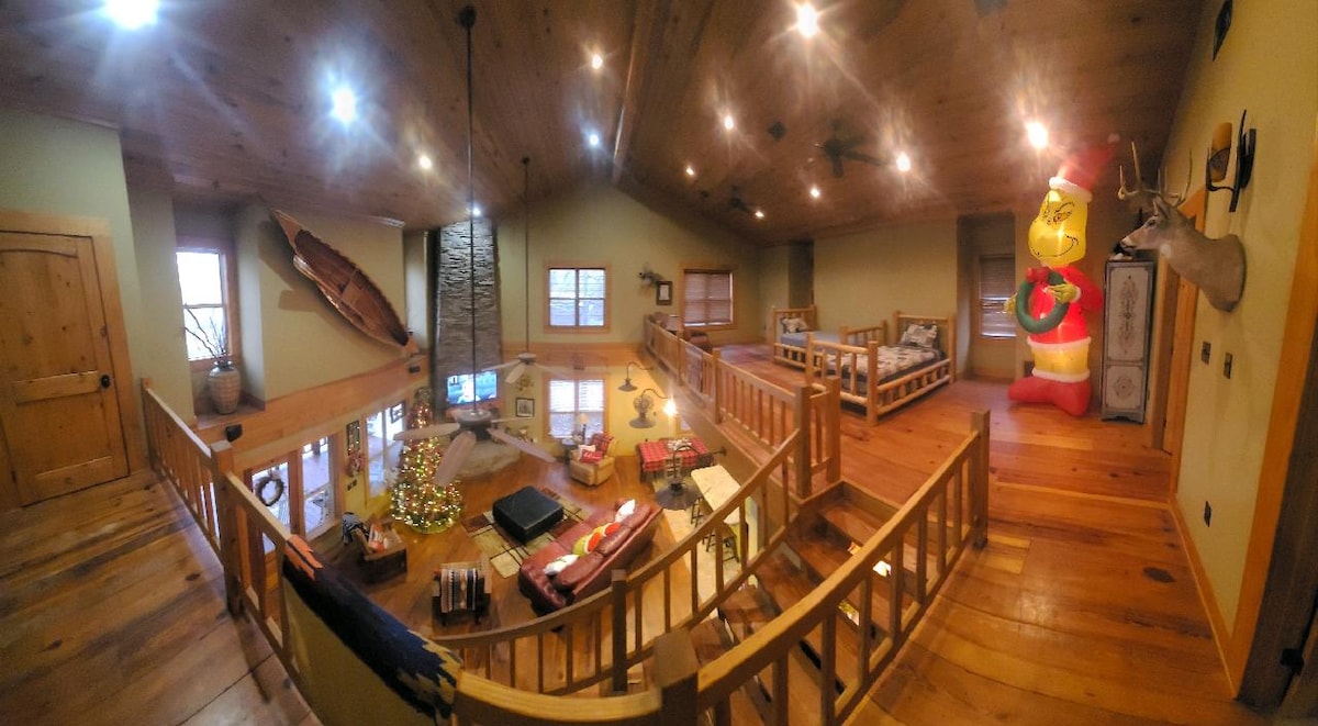 這間獨特的度假屋坐落在卡多河( Caddo River )的3英畝私人土地上。 讓這個美麗的房源成為您自己的家。 家庭時光、足球比賽或搖滾樂。 室外娛樂空間有瓦斯火坑、壁爐和座椅。 有遮蔽的門廊,可以坐下來喝咖啡,看著老鷹在河上飛翔或日出。 供牛排或漢堡使用的瓦斯烤架。 超高速WiFi , 5臺智慧電視,可觀看您最喜愛的電影或遊戲! 室內壁爐散發著舒適的放鬆感。靠近當地購物