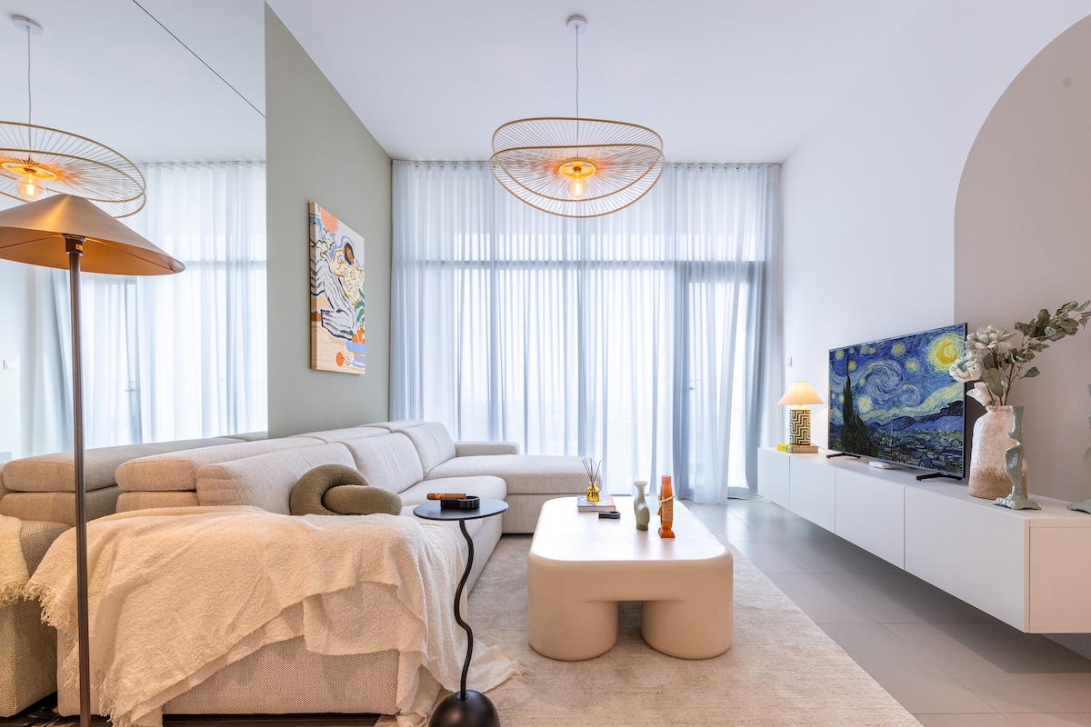 歡迎來到Hills House Luxury,這是位於杜拜山莊(Dubai Hills Estate)中心的安靜設計度假勝地。 這間斯堪的納維亞風格的公寓位於郁郁葱葱的公園、迪拜山購物中心和國王學院醫院附近,融合了舒適、時尚和便利,非常適合家庭、情侶、醫生、商務旅客和注重健康的旅人。 這間單人寢室的寶石坐落在Prive Residences ,提供現代化的設施、寧靜的夜景,並可輕鬆前往城市生活和綠地。