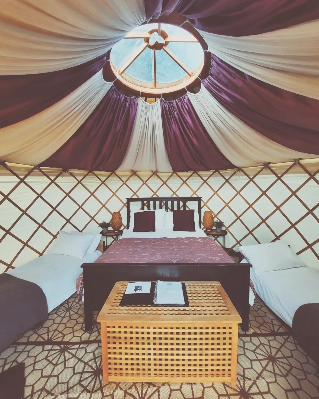 舒適蒙古包-加大雙人牀-原木燃燒器-梅林
