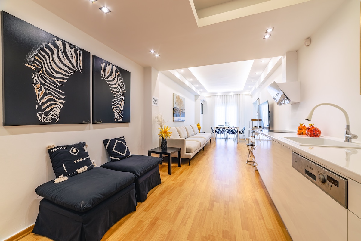 在這個設計時尚又安靜的空間中好好放鬆身心。 非常適合情侶或有小孩的夫婦(提供嬰兒床/遊戲床和浴缸)。 沙發可打開成為一張額外的床。Murphy 皇后床可以打開或關閉在牆上,打造寬敞的客廳。 位於格利法達(Glyfada)的頂端,步行7分鐘即可抵達著名的時尚區,步行4分鐘即可抵達前往比雷埃夫斯(Piraeus)、雅典衛城(Acropolis)、辛塔格馬(Syntagma)、機場的電車。步行即可抵達許多海灘、餐廳、超市、電影院。歡迎並享受!