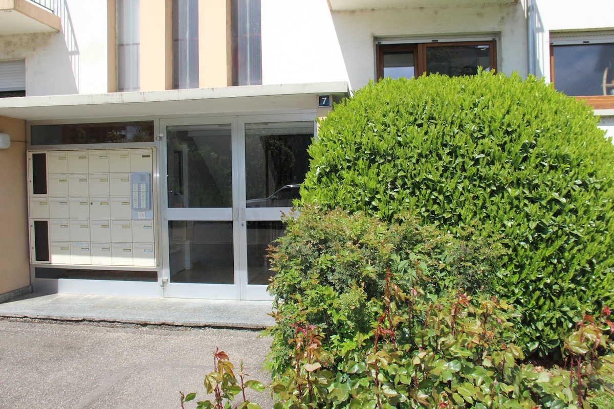 Cosy 30m2 flat in the groundfloor of a house with garden +15m2 terrace in front of the house. 15 minutes to Basel Airport - TV 42 inch, DVD player + lots of DVDs - kitchen: micro-wave/oven, hot plates, fridge, freezer, dishwasher, Nespresso, kettle... - Possibility to have breakfast (coffee, tea are free, orange juice, crackers, butter, jam, honey, cereal bar and dry fruits) - Big wardrobe - Bed made upon arrival - Towels and all basic products (oil, spices,... are provided - Free parking space