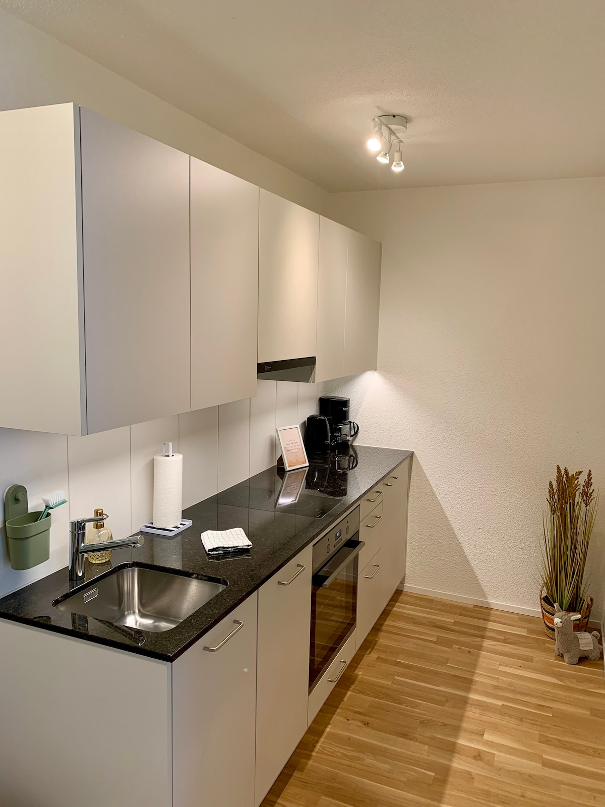 Südengerichtete Untergeschosswohnung mit privatem Eingang und eigenem Garten. An Aussichtslage, ohne Verkehr aber nur 2 Min zum Bus. 12 Min zu Fuss bis zum Goetheanum . Parkplätze gibt es an der Strasse . Das Schlafzimmer ist sehr geräumig. Der Fernseher hat nur Smart TV übers Internet. Die Küche ist gut ausgestattet aber der Wasserhanen in der Küche hat nur kaltes Wasser.Warmes Wasser gibt es im Badezimmer welches direkt neben der Küche ist. Das beliebte Bett ist 180x220cm zudem 2 Einzelbette.