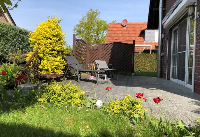 Our holiday home offers 130 sqm with 3 bedrooms and 2 bathrooms enough space for up to 6 persons. The house is nicely furnished and comfortably equipped. You will find a new and fully equipped kitchen, a dining area with fireplace, two bathrooms, a sauna, a room with a multifunctional fitness equipment and a large living area with radio and new TV. From the kitchen you can access the terrace and the beautiful garden with garden furniture and barbecue.