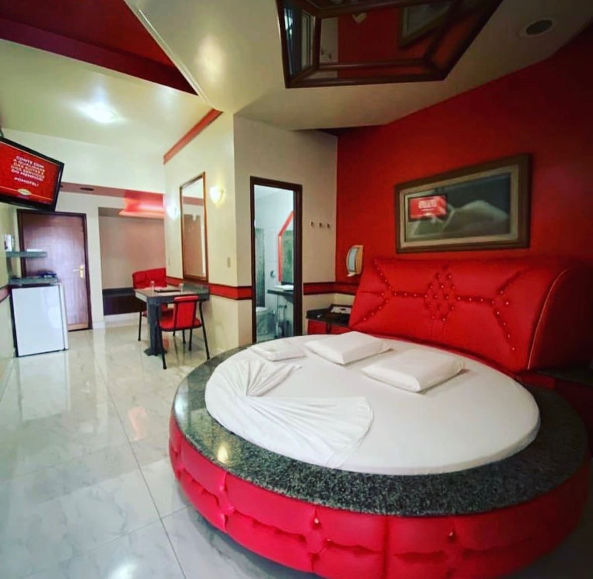Suíte de MOTEL, com garagem privativa, Dispõe de cozinha com funcionamento 24 horas, com pratos e serviços cobrados separadamente. O espaço foi pensado para proporcionar uma experiência aconchegante, seja para uma noite especial ou uma curta estadia. O quarto conta com cama confortável, ambiente climatizado e decoração moderna, criando um clima agradável e reservado. Tudo é preparado com cuidado para garantir limpeza, conforto e bem-estar