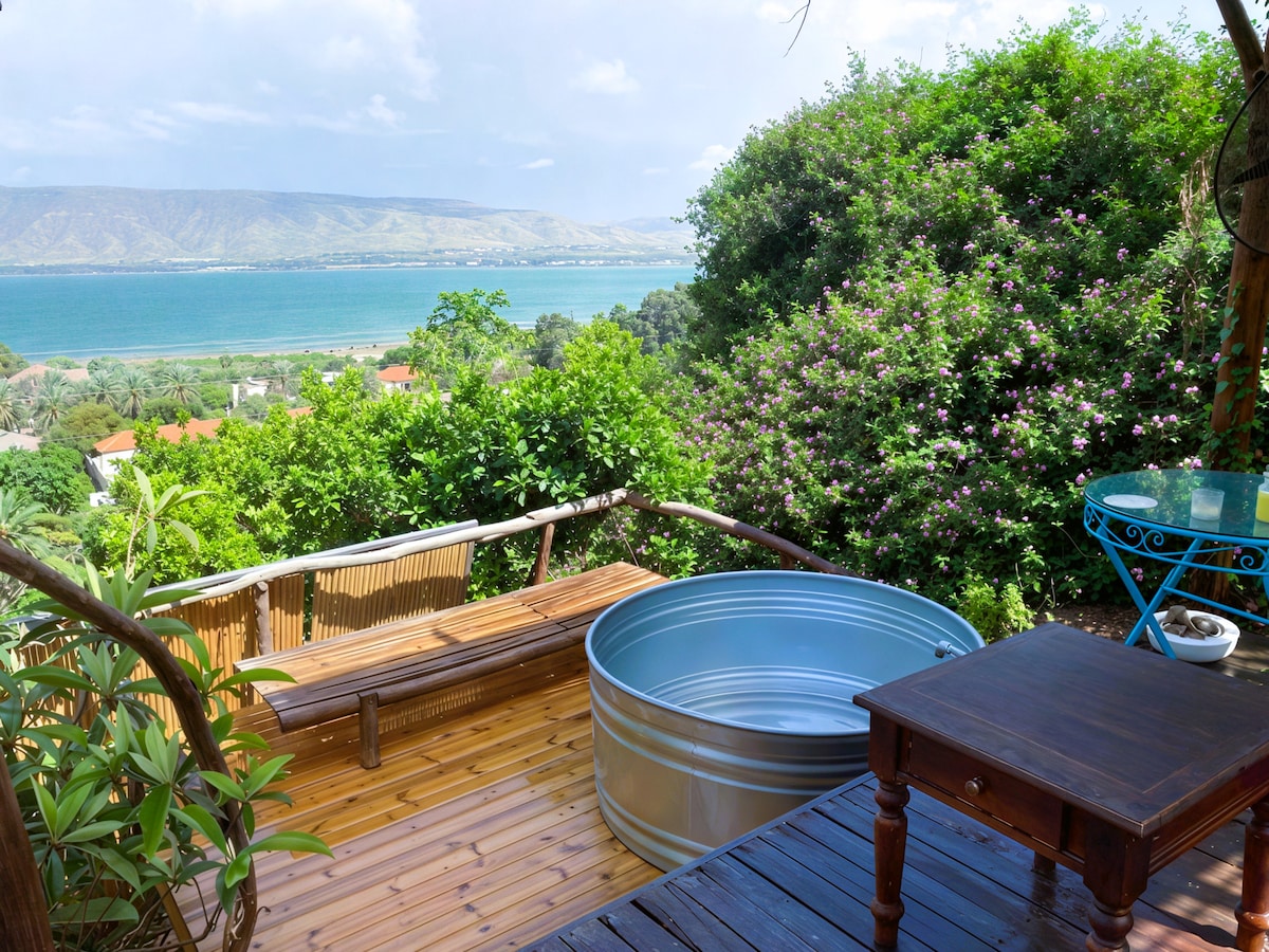 設計精良的精品公寓,可俯瞰加利利海和戈蘭高地的全景。 位於一棟保護建築內,前往加利利海( Sea of Galilee )都很方便。 在公寓裡,有2間呵護歐式臥室,配有雙人牀、牀墊和矯形枕頭。 此外,客房內還有雙人牀。 公寓配備牀上用品、客用毛巾、廚房用具、廚房用具、烤箱、微波爐、濃縮咖啡機、冰箱、洗碗機、感應爐、水過濾Tami 4、每間房間都有電視和空調,俯瞰俯瞰壯麗景觀的雙熱水浴缸,可俯瞰華麗景觀的甜蜜陽臺,現代化浴室配有大淋浴洗衣機和烘乾機。