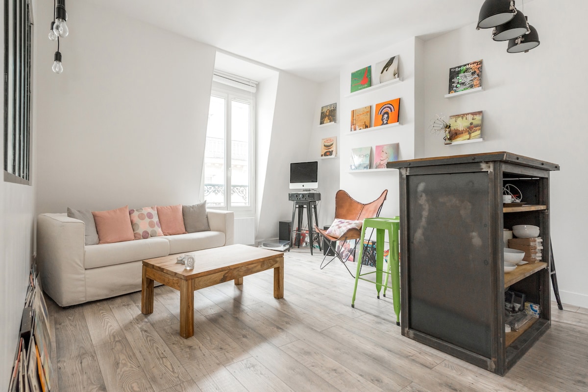 設計公寓(我的家!)最近翻新,位於Goncourt街區,距離聖馬丁運河和Le Marais僅幾條街。 您會很高興發現這個時髦的街區和巴黎的其他地方(從這裡很容易到達),然後在沙發上放鬆,享受樓下麵包店或麵包店的糕點(Yann Couvreur就在附近)。 *我很樂意親自接待您: -) 無自動入住,無鑰匙盒!*