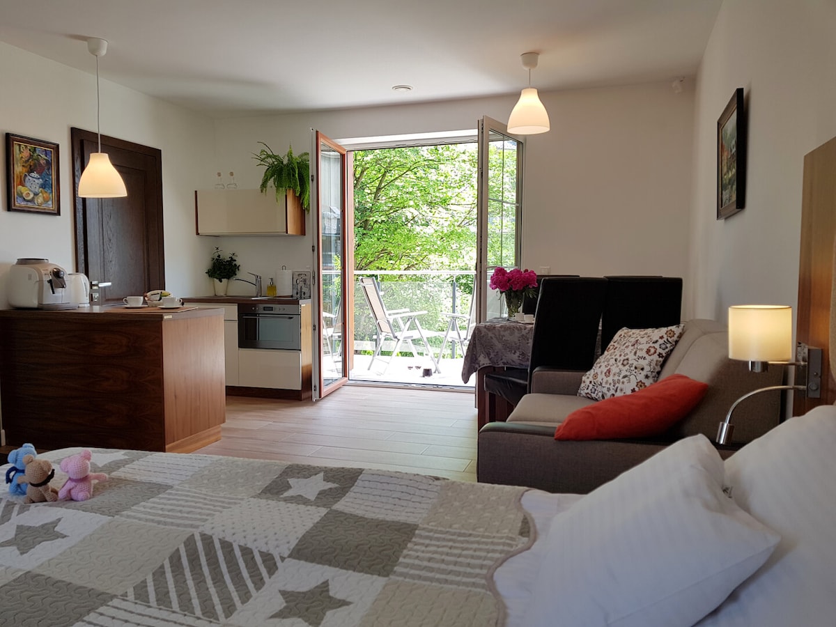 我們誠意邀請您入住ul. Zdródlana 45上設備齊全的全新公寓。 公寓設有一間臥室(雙人牀)、一間與客廳相連的小廚房和一間帶淋浴間的浴室。 浴室配有烤箱、微波爐、洗碗機、咖啡機和洗衣機。 Zdródlana住宅區非常適合有小孩的家庭(附近有遊樂場、元素花園)。 *價格取決於季節和住宿晚數