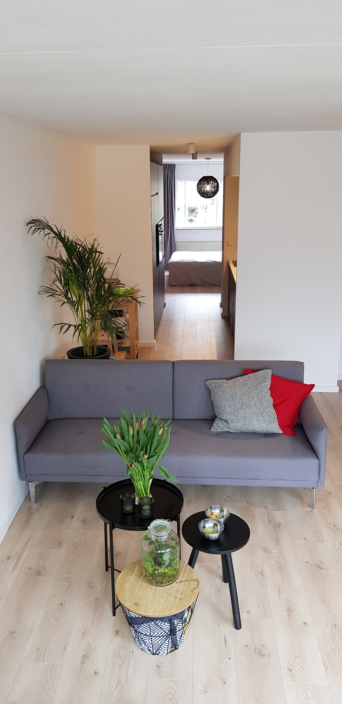 嗨!這間(100平方米)的鄉村公寓有很多光線,感覺非常寬敞。在一個安靜的區域中間,有很多年輕夫婦。靠近超市(新鮮橙汁! )、中央車站、高速公路出口、兩個公園和動物園! ! 免費泊車位於另一個街區,就在對面。搜尋Schansweg,你會找到它。