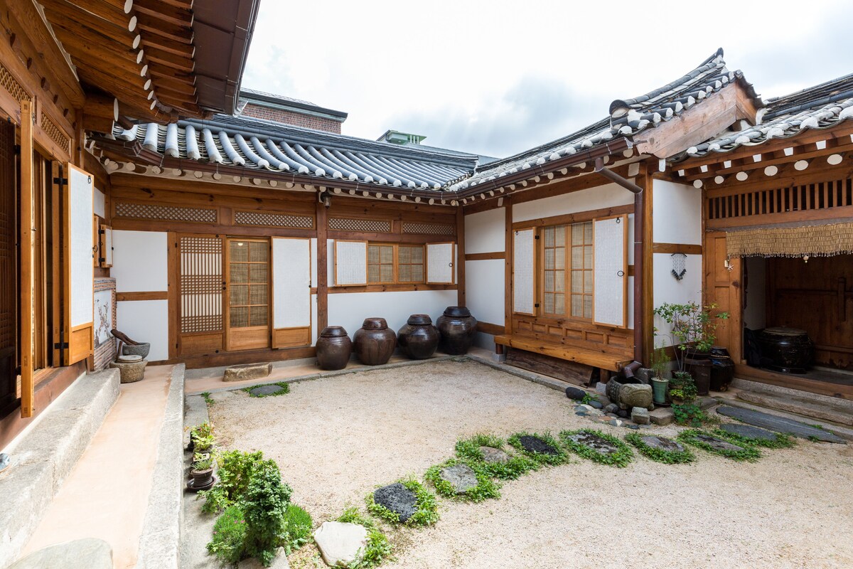 안국역 3분/프라이빗 한옥/평지/호텔식침구/북촌/경복궁/맛집 도보/4BED/2BTH