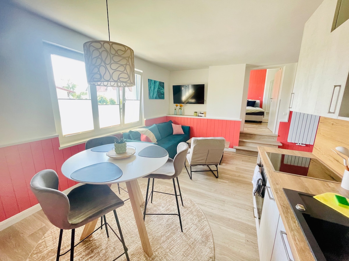 在這片寧靜的綠洲中放鬆身心,好好休息一下。 🏖️ 沙灘約 10 分鐘,提供自行車,步行約 24 分鐘 🚲 包括 2 輛自行車 🛜 穩定的光纖網路 一🏡 樓有露臺和大花園(約 40 平方公尺的公寓,約 100 平方公尺的花園) ♨️ 地暖 🛋️ 客廳區域有休息區和電視 設👩🍳 備齊全的廚房(例如 洗碗機、咖啡機、烤麵包機、水壺) 🛌 1 張彈簧床 + 1 張沙發床 💶 保險箱 🚿 站立式淋浴 允許使用🔌電烤爐