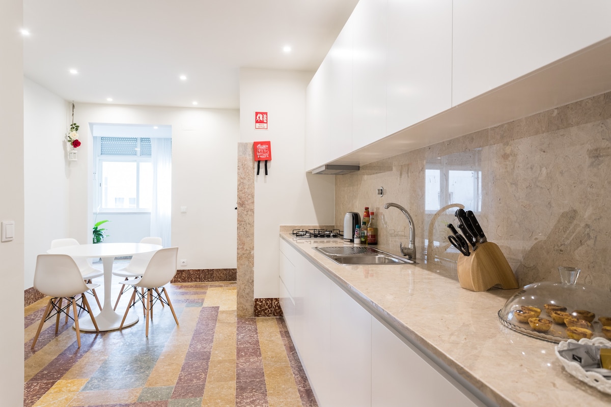 時尚、寬敞和中央單間公寓,配有: 🛌 最佳睡眠品質:舒適的特大床、豪華枕頭和柔軟的白色床單 🚿非常大的大理石浴室,配有優質毛巾和免費洗漱用品 ❄️空調👗洗衣機和烘乾機🛗電梯 👨🏻‍🍳廚房🍷充滿活力的區域,有許多餐廳、商店和咖啡館📍步行即可抵達Chiado、Bairro Alto和Cais do Sodré 🚋直接乘坐28號電車 📶 Wi-Fi 📺智能電視,提供200多個高清頻道🧼一塵不染 🛒距離超市1分鐘