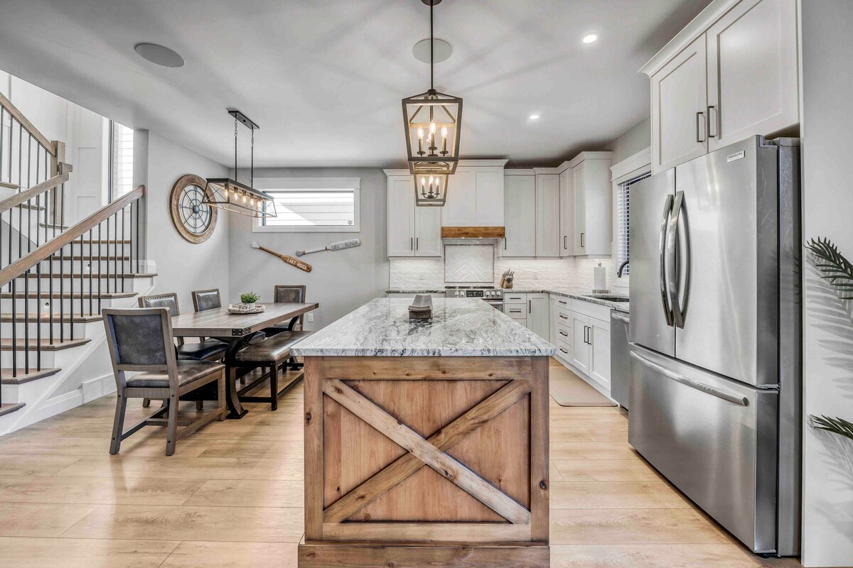 最好的位置!完美的家庭小屋或女孩度假勝地! 在巨大的有蓋露台(夏季有65英寸電視)下的熱水浴缸中浸泡時,欣賞世界著名的休倫湖日落。家具精美,全面翻新。 WiFi、Netflix、空調、玻璃淋浴間。 洗衣機/乾衣機。燒烤。Keurig咖啡機和普通咖啡機。 可停泊8輛車。 距離主街50步之遙。 關注我們@lakesidebeachhouse,以獲取取消和預訂狀況更新