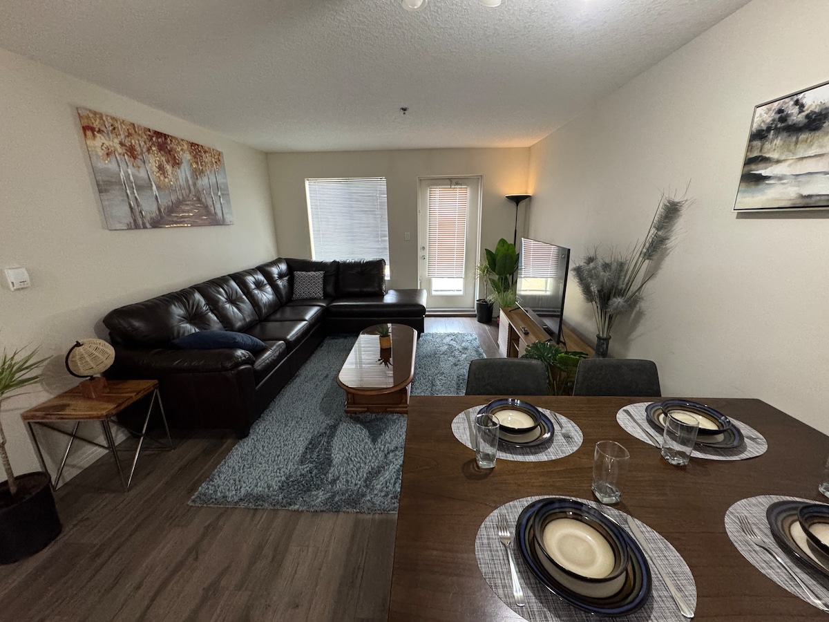 入住這間位處中心地段的公寓,享受這裡的時尚品味。房源地理位置方便,靠近新的Grande Prairie區域醫院、西北理工學院和便利的購物選擇。沿著步行和自行車道,穿過美麗的Muskoseepi公園,連接到數英里的鋪面小徑,幾分鐘內您就可以被大自然包圍。房源經過精心設計,並配有精心挑選的家具和床單,以確保您的舒適和享受。