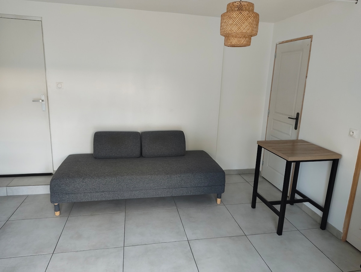 21 平方公尺的單間公寓,配備齊全。安靜且安全的區域。位置優越:靠近所有商店和 A16 高速公路入口(2 分鐘)。 距離海灘 1800 公尺(步行 20-25 分鐘,開車或搭乘巴士 5 分鐘)。步行 7 分鐘即可抵達巴士站(前往 Dk 中心 5 分鐘,火車站 10 分鐘)。 街邊可免費停車。可選擇車庫位。免費租用自行車。WiFi(光纖)