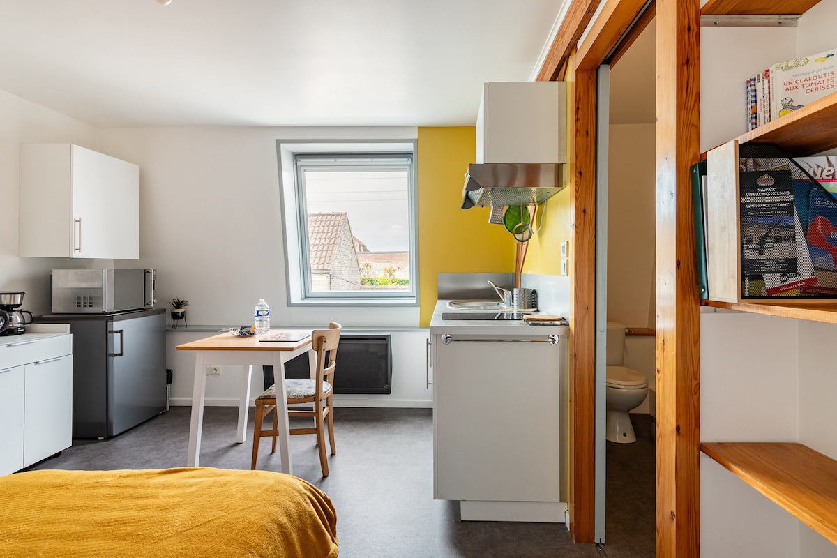 在這間位於市中心的17平方米寧靜旅居中簡化生活,享受私人戶外空間。 無障礙法式滾球場 單間公寓靠近A25和A16高速公路,但也靠近免費城市巴士網絡(步行2分鐘即可抵達),前往Malo les Bains海灘和敦刻爾克市中心。 它也靠近健身室(Basic Fit)、市政游泳池和購物中心(Carrefour)。 路邊免費停車位