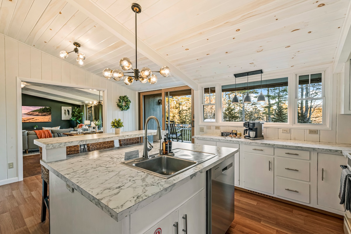 在高聳的松樹和花崗岩巨石之間享受我們舒適的家外之家,探索阿卡迪亞後的完美休息。我們新建的小木屋具有質樸的緬因州魅力和現代舒適:空調、瀑布淋浴、記憶泡綿床墊、室內瓦斯壁爐、室外瓦斯火坑、瓦斯烤架、按摩浴池、4K電視、高速網路、現代廚房、過濾水、瓦斯爐、高端電器和前置式洗衣機/烘乾機。