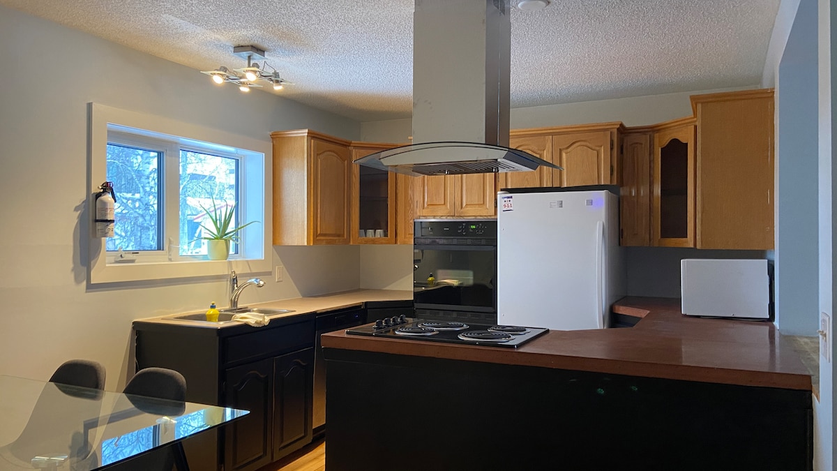 Plum's Place is a charming one-bedroom home, perfect for couples, solo travellers, or those visiting for work. Backing onto green space and trails, it offers stunning aurora views. Enjoy a peaceful stay with all the comforts of home, surrounded by nature yet close to everything you need. There are two black dogs on the premises. While they are upstairs and separate from the suite, some occasional barking may be heard. We recommend this stay is best suited for guests without pet allergies.