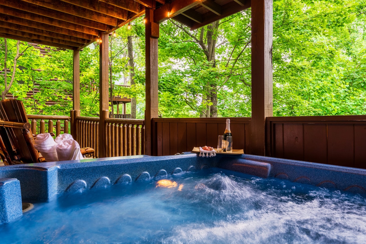Timberfallrefuge 歡迎來到 Gatlinburg Love Nest,這是您完美的蜜月度假勝地,坐落在田納西州加特林堡市中心。這間舒適現代的 1 臥 1 衛小木屋專為情侶設計,提供浪漫的氛圍和您需要的所有舒適設施,讓您度過難忘的住宿體驗。 在室內,您可以享受電壁爐的溫暖,在私人按摩浴池中放鬆身心,並在設備齊全的廚房中享用一杯新鮮的咖啡,開始新的一天。