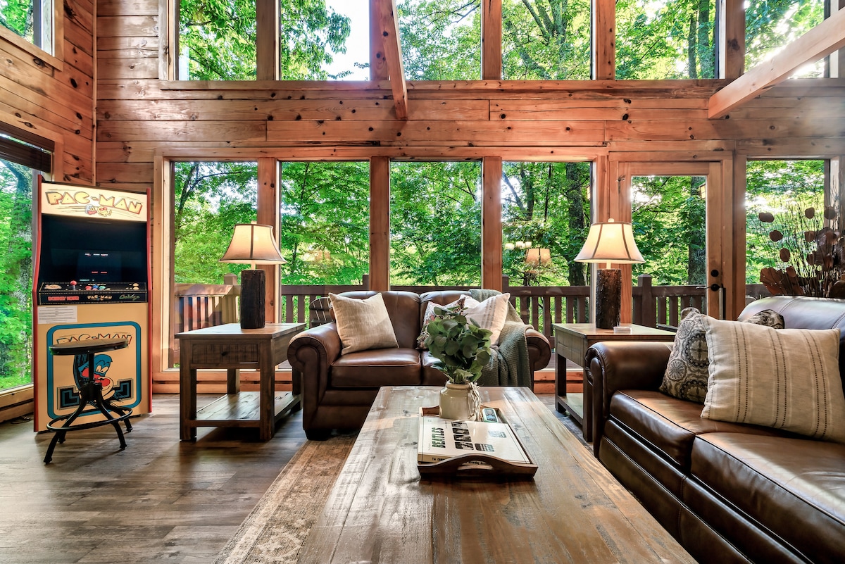 坐落在36英畝的私人山頂上(公園外最高的山頂!)Belltop 是完美的度假勝地。歡迎享受 2024 年的翻新成果!由 StayBham 提供,創造靈感度假勝地。 在寬敞的蒸氣房中享受蒸氣療法。在閣樓享受日出瑜伽。泡在按摩浴池中,俯瞰山谷景致。玩復古電玩遊戲。聽唱片或彈鋼琴。坐在火堆旁欣賞日落。從Wears Valley入口到大煙山只需幾分鐘。