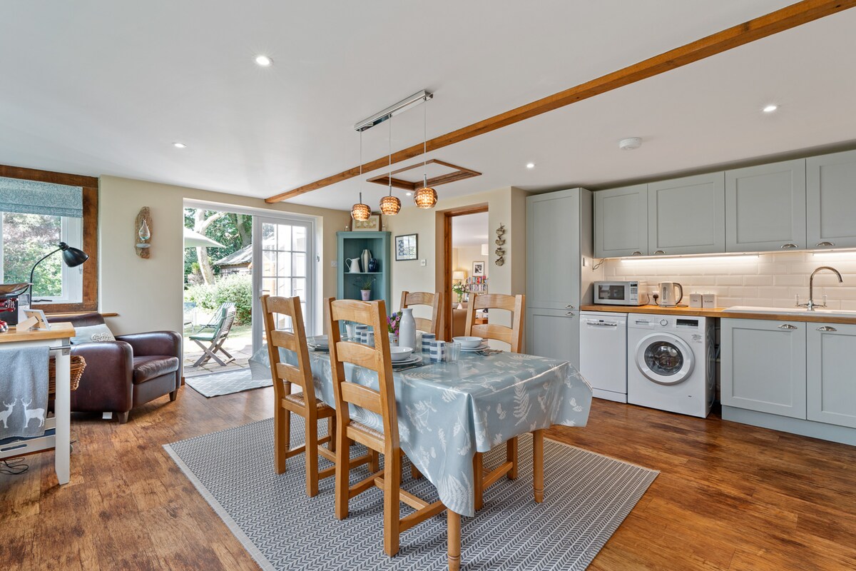 在這座位於森林上且靠近大海的現代鄉村平房中放鬆身心。步行前往新森林,欣賞風景優美的花園,俯瞰野生動物遍佈的田野,或在放牧的小馬、驢子和牛之間沿著安靜的小巷騎自行車。兩個很好的酒吧在1.5英里內,歷史悠久的城鎮Beaulieu和Lymington分別在3英里和4.5英里外。附近古樸的歷史造船廠Bucklers Hard有博物館、酒吧和碼頭。IOW也很近。