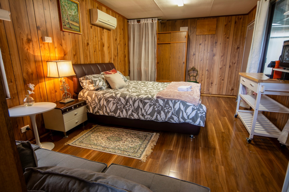 距離希思科特中心5公里的自然灌木叢環境中的2人生態小屋。 本迪戈(Bendigo)東南50公里。 開放式起居區,配有舒適的雙人床和簡約的廚房。12伏特冰箱。 甲板淋浴間和馬桶。 USB充電插座。WiFi 可使用木質暖氣和營火。