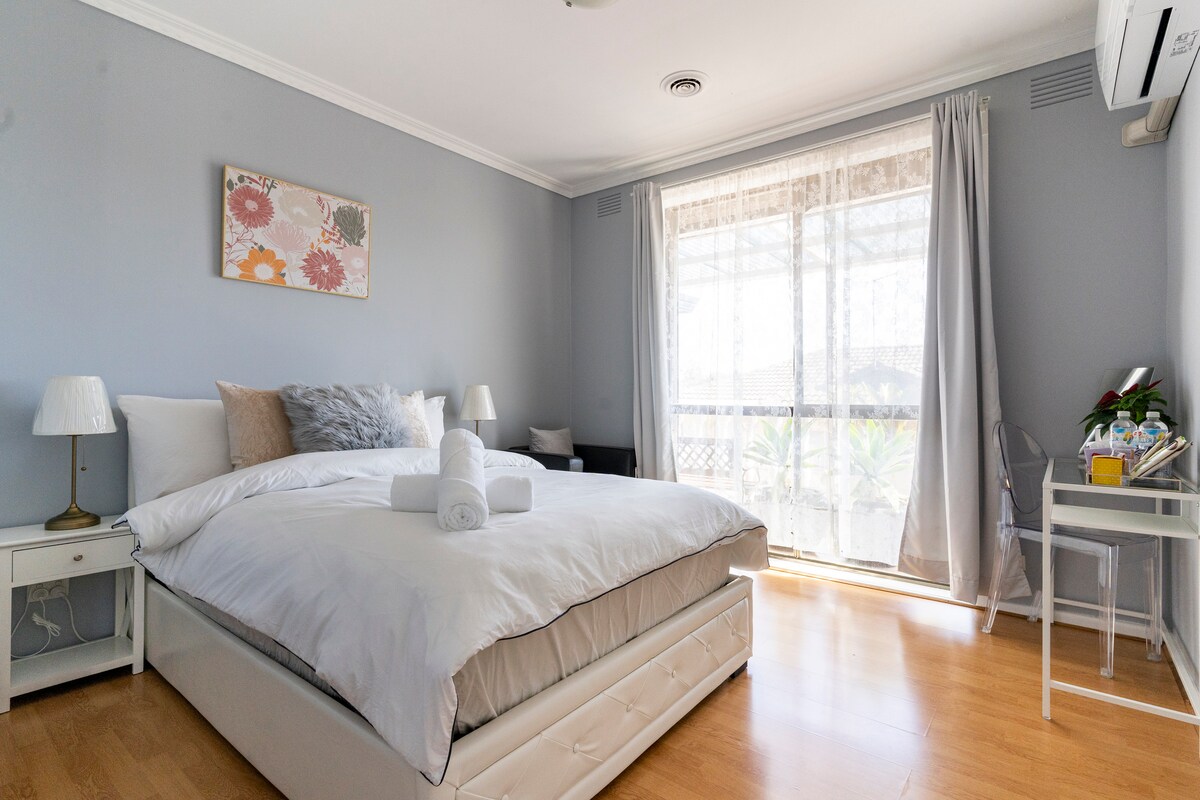 This stylish home is ideally located for your Melbourne stay. It features thoughtfully chosen Chinese-style furniture, creating a genuine family atmosphere. The kitchen and bathroom are fully equipped with all essentials, ensuring a smooth experience. The property is exceptionally clean and well-maintained. All 3 generously sized bedrooms feature queen-size beds and study nooks. Each bedroom includes an en-suite and walk-in wardrobe. Additionally, all 4 toilets are equipped with smart bidets.