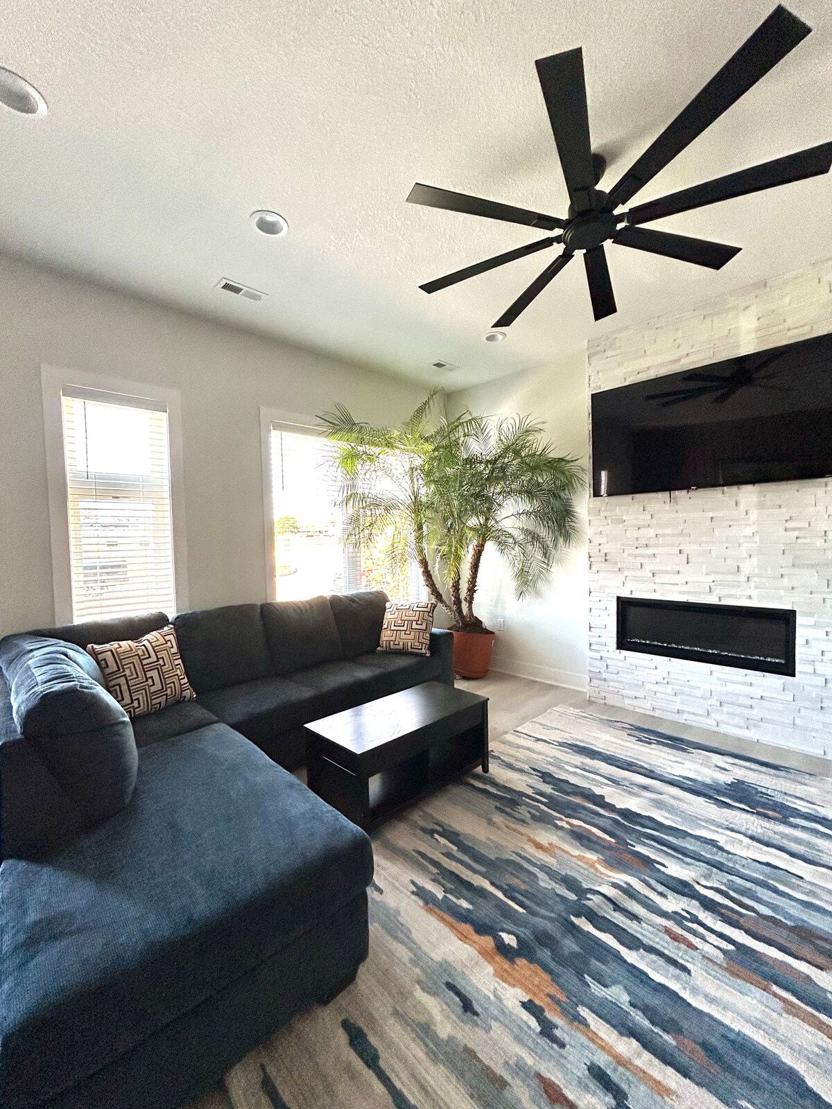 Discover the heart of Des Moines in this vibrant downtown Airbnb! Nestled in the best locale, steps away from nightlife, historical landmarks, groceries, diverse dining, and lively bars. - King bed loft - 12.5 foot ceilings - Walk to Wells Fargo Arena - Walk to Science Center - Private balcony - Restaurants, bars, nightlife and coffee nearby - Fully stocked kitchen - Free parking included - 65" smart TV and Roku - Roll away bed