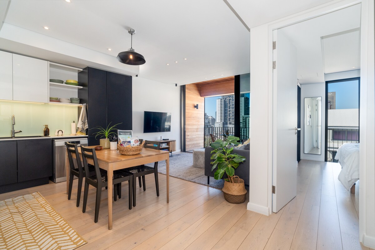 Welcome to your modern urban retreat at 16 on Bree, located on one of Cape Town’s most fashionable streets. Just a 9-minute walk to the CTICC and V&A Waterfront, this beautifully designed apartment is perfect for business travellers or holidaymakers looking to explore the city on foot. Secure free parking onsite, a 9-minute walk to CTICC and V&A waterfront. Offering stunning views of Table Mountain and the harbour, 24-hour security, rooftop pool, and high-speed fibre connectivity.