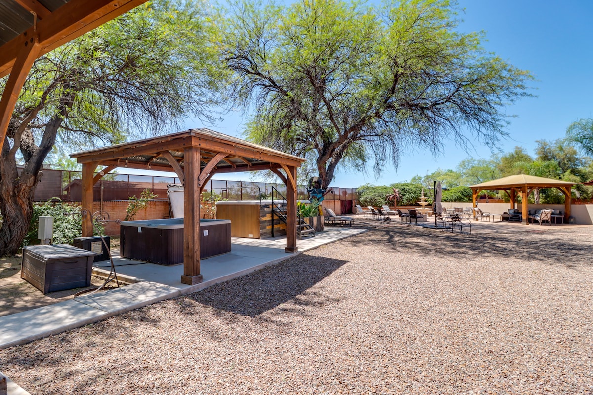 Main House, Guest House + 3 Casitas | Steps to Tanque Verde Creek Trail | Hot Tub & Swim Spa Make your next family reunion a hit when you stay at this amenity-packed vacation rental! This Tucson estate allows you and your crew plenty of privacy and outdoor living spaces to unwind. Relish the stunning landscapes of the Sonoran Desert when you hike Sabino Canyon, or stay home and grill up a family feast in the outdoor kitchen. ‘Horse Thief Ranch’ is the perfect launching point for your retreat!